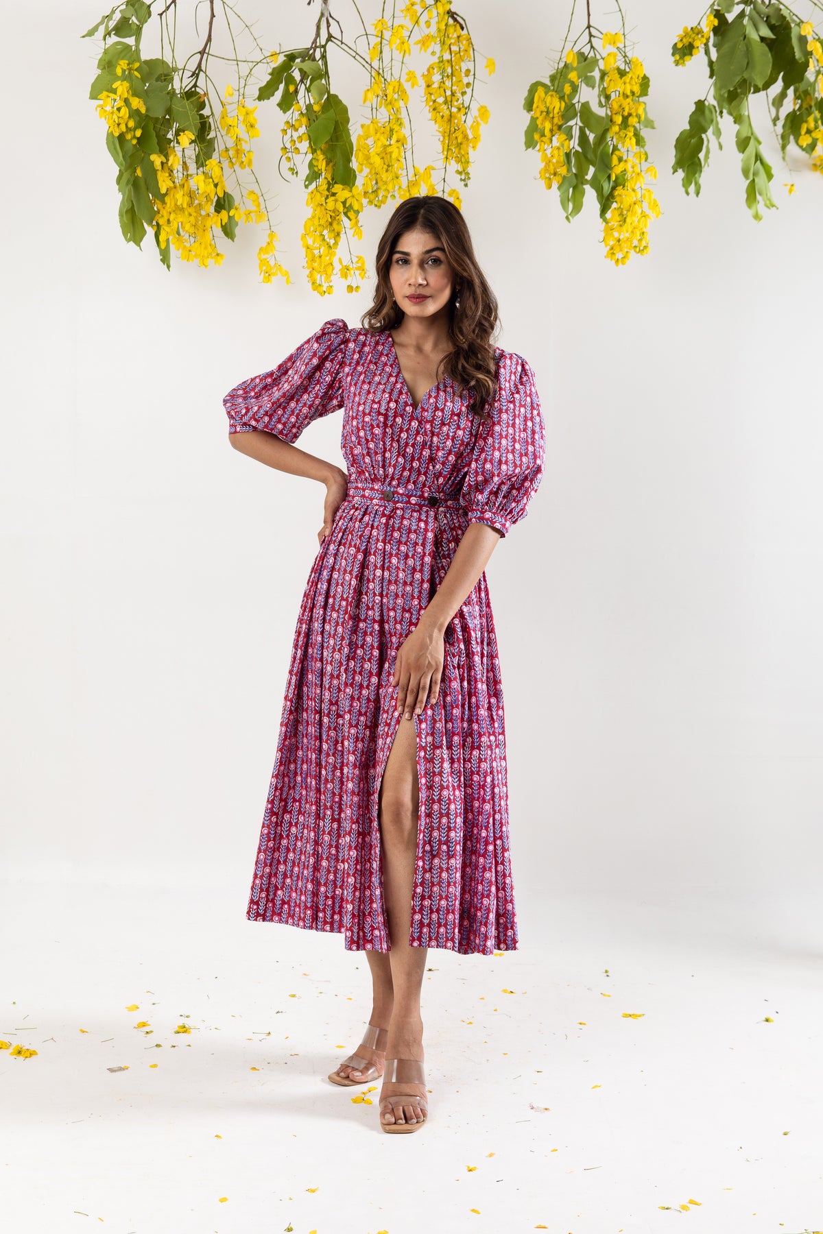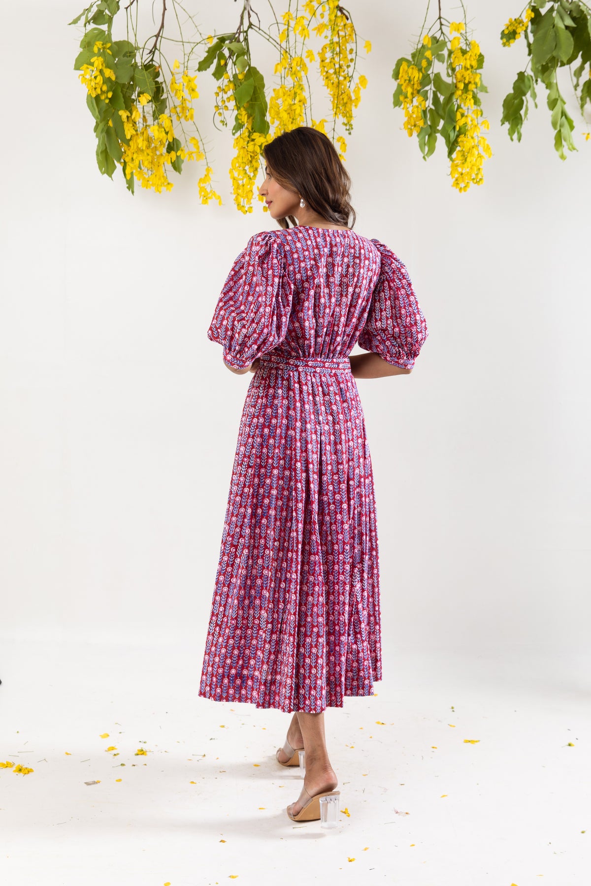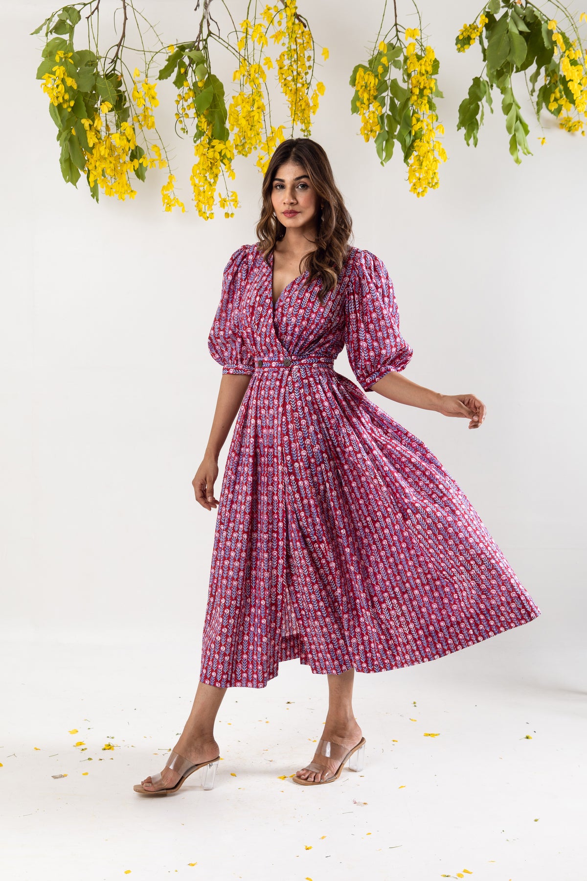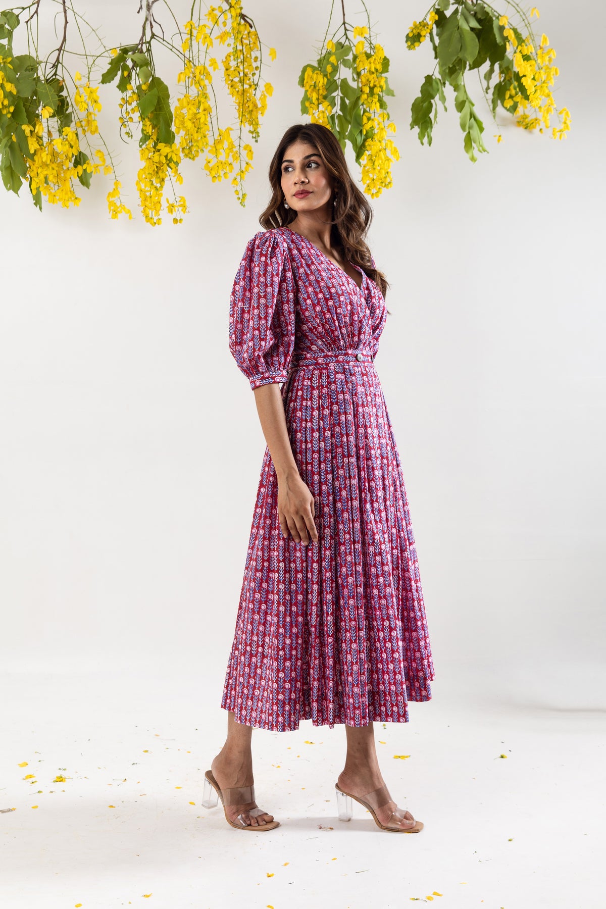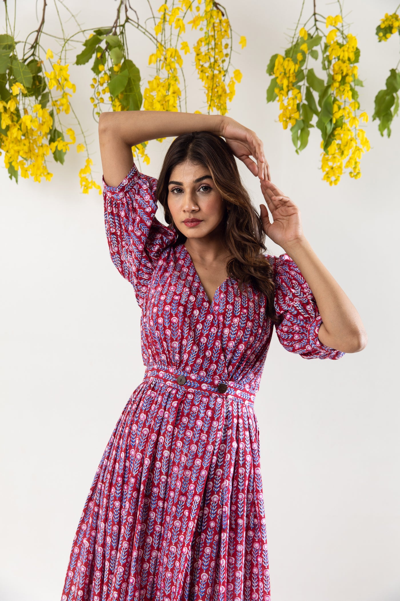 The fabric used to create this dress is completely hand printed and some inconsistency in color and print may occur. We attribute this to the beauty of hand block printed fabrics which leads to exclusivity of the product.