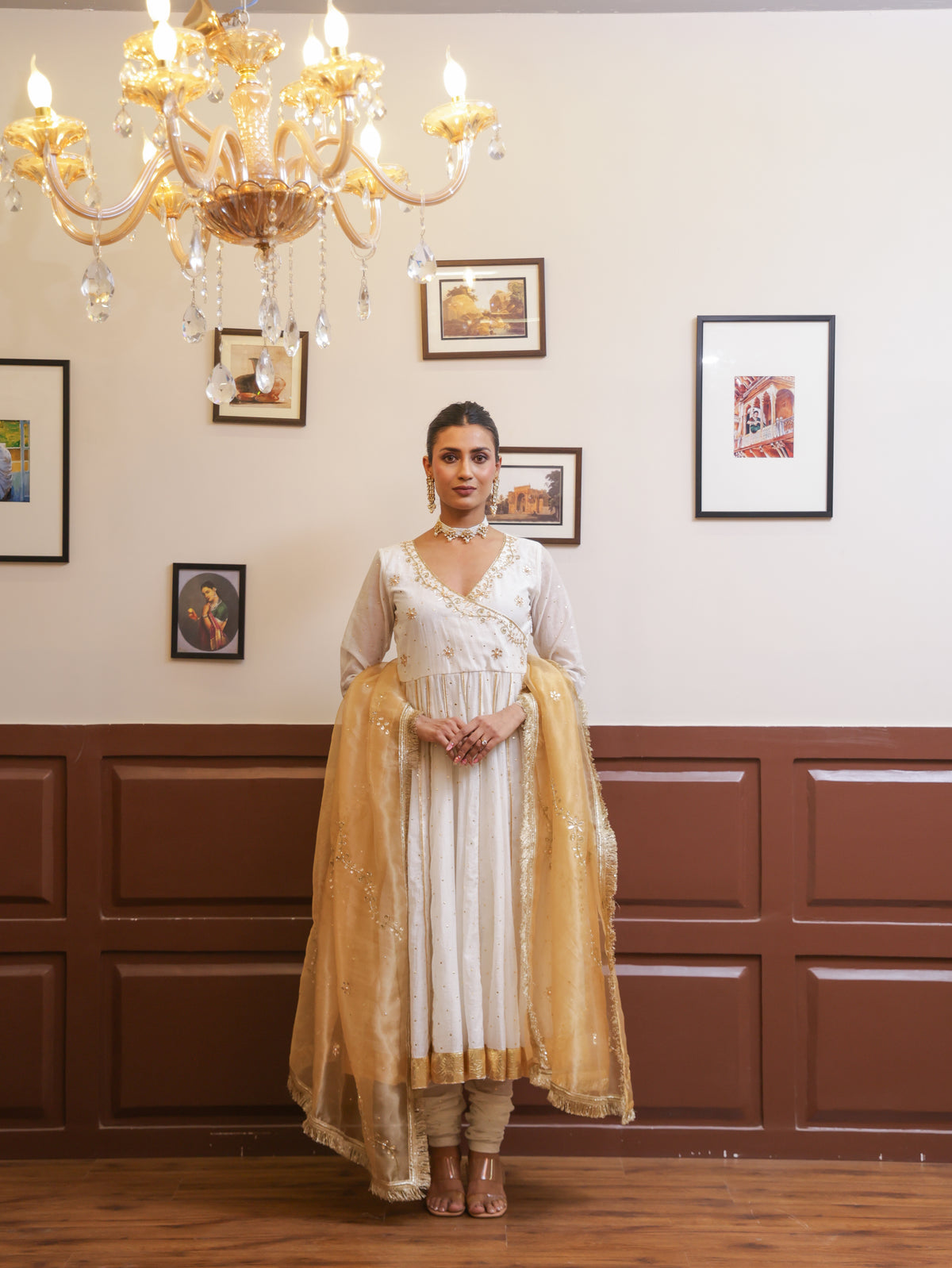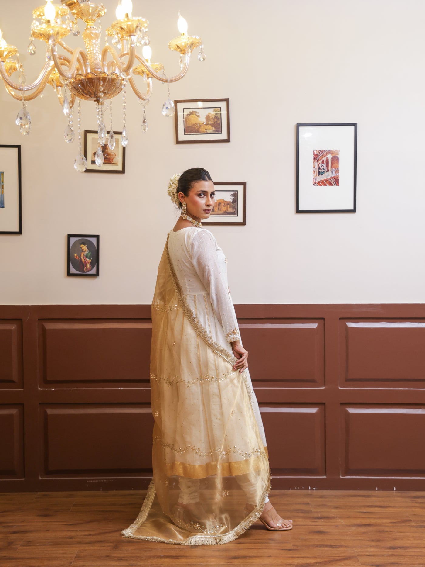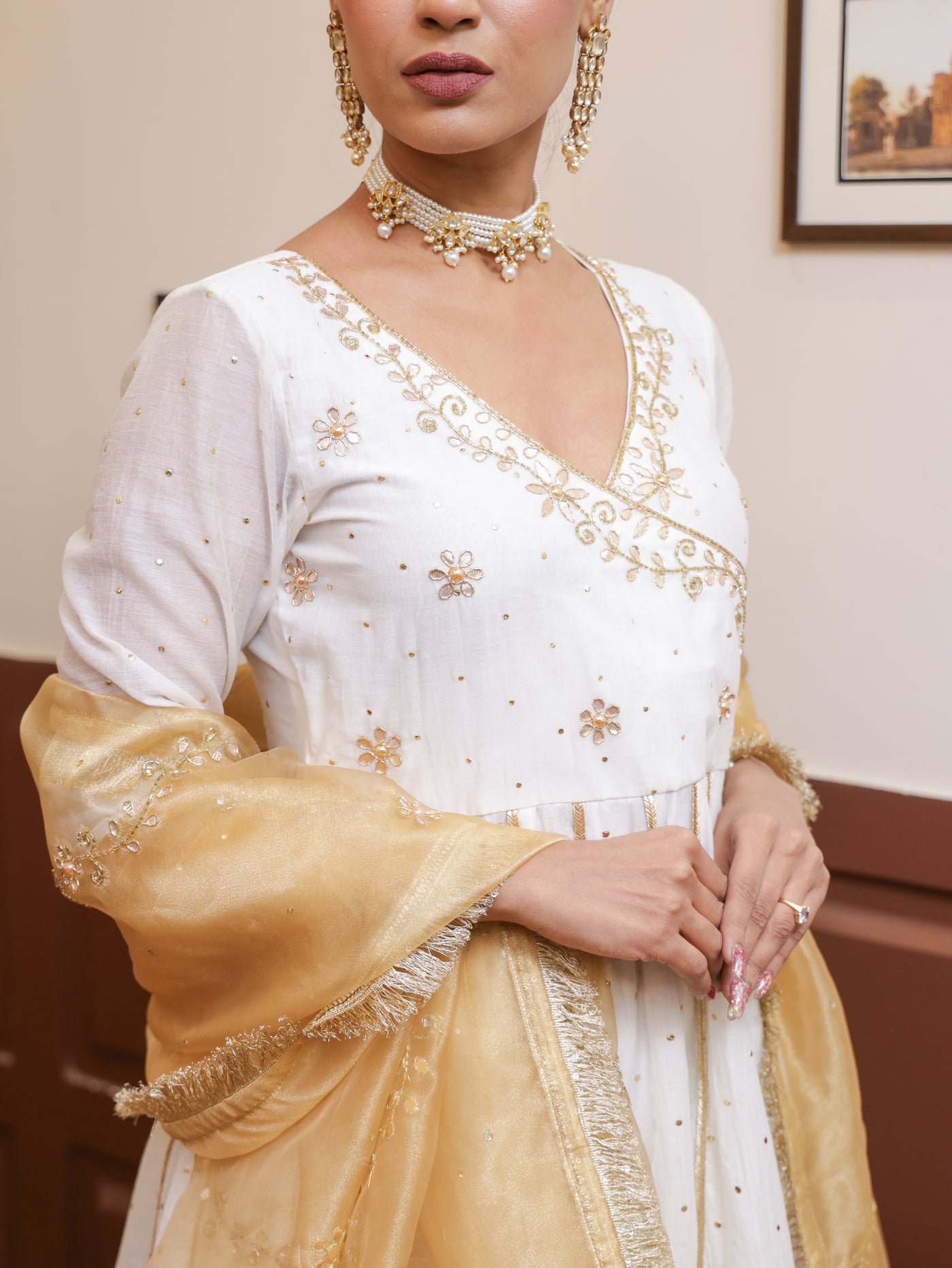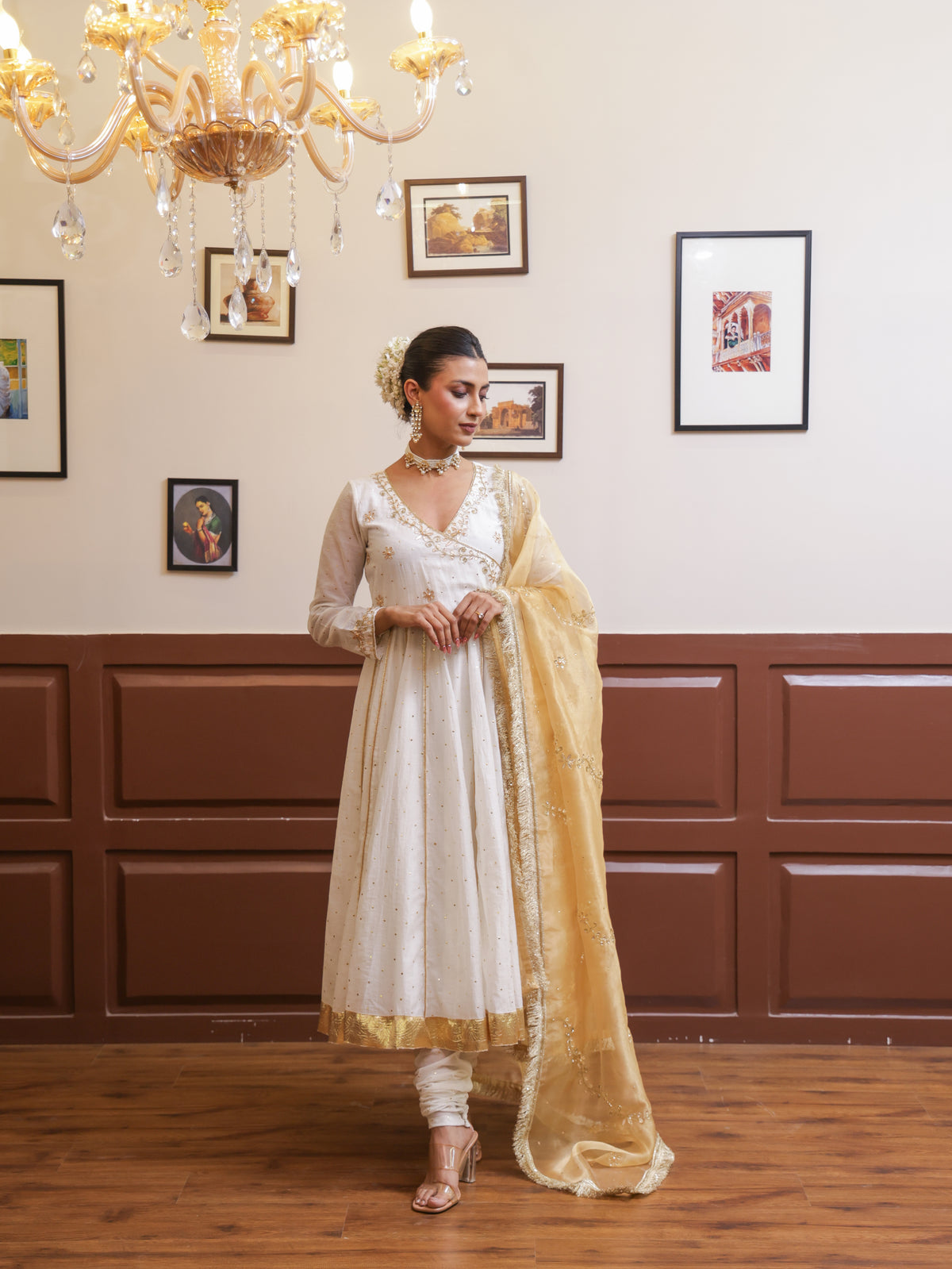 Falak White Mukesh Anarkali set