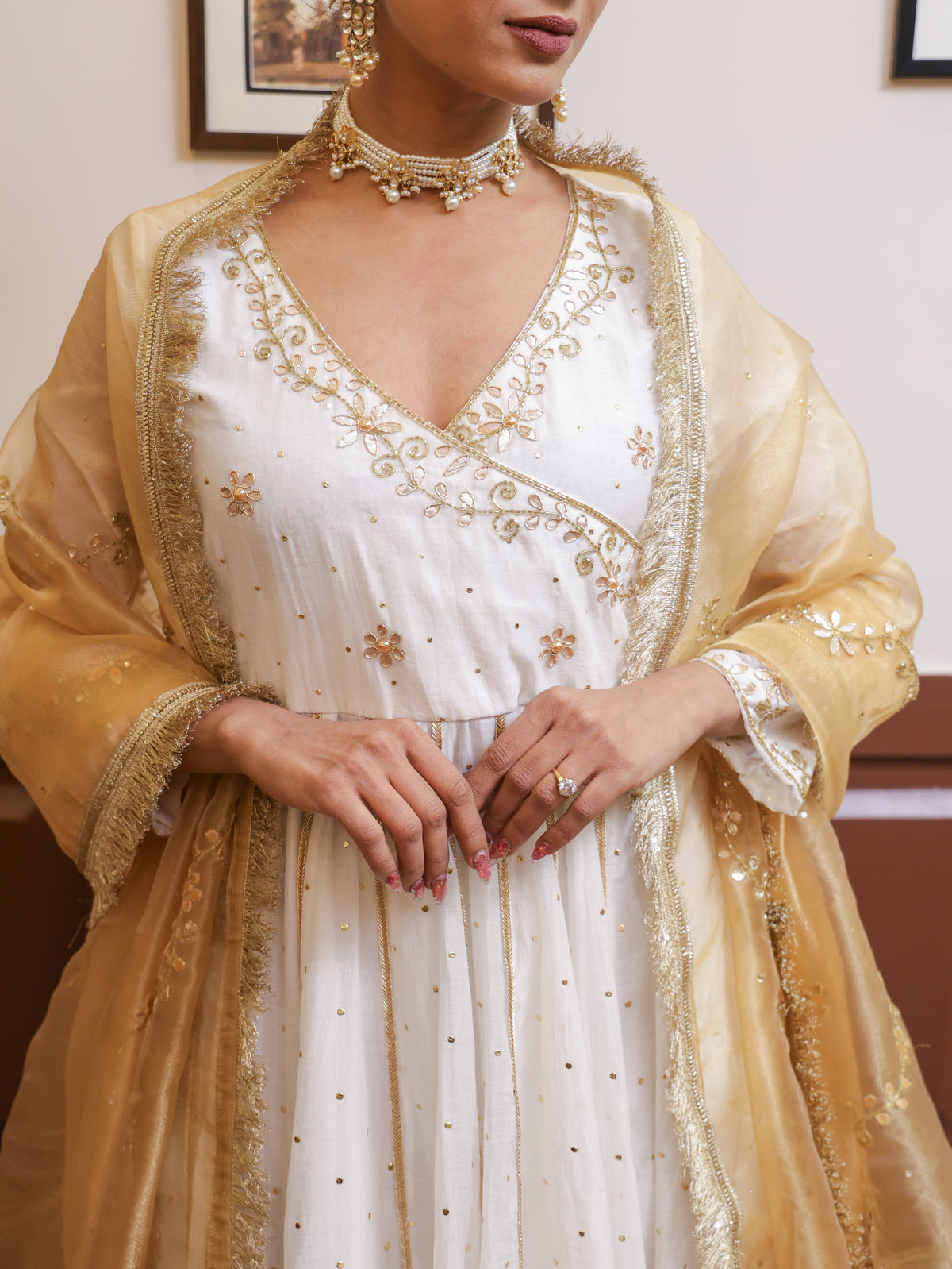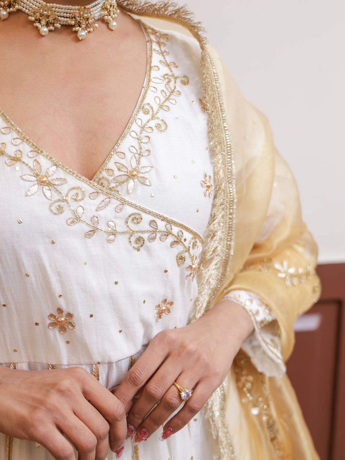 Falak White Mukesh Anarkali set - XS